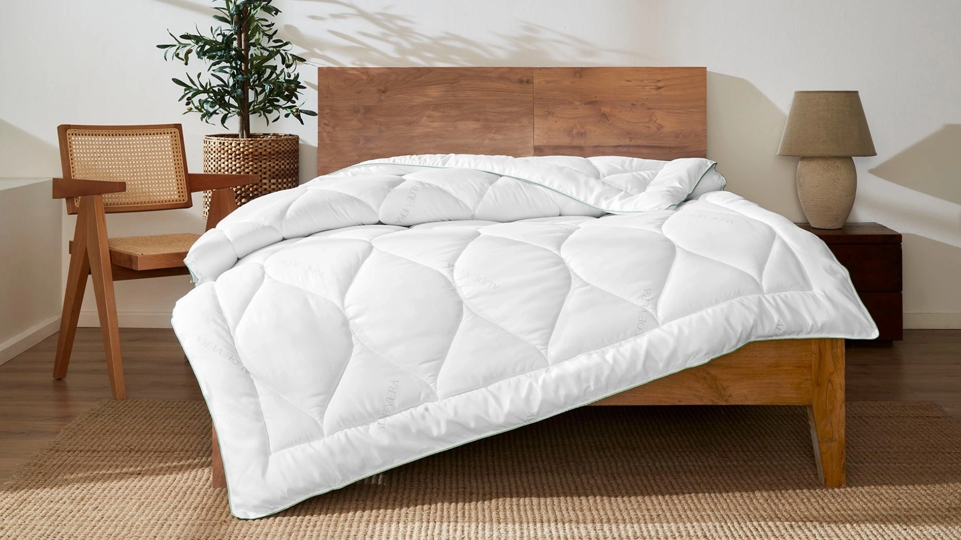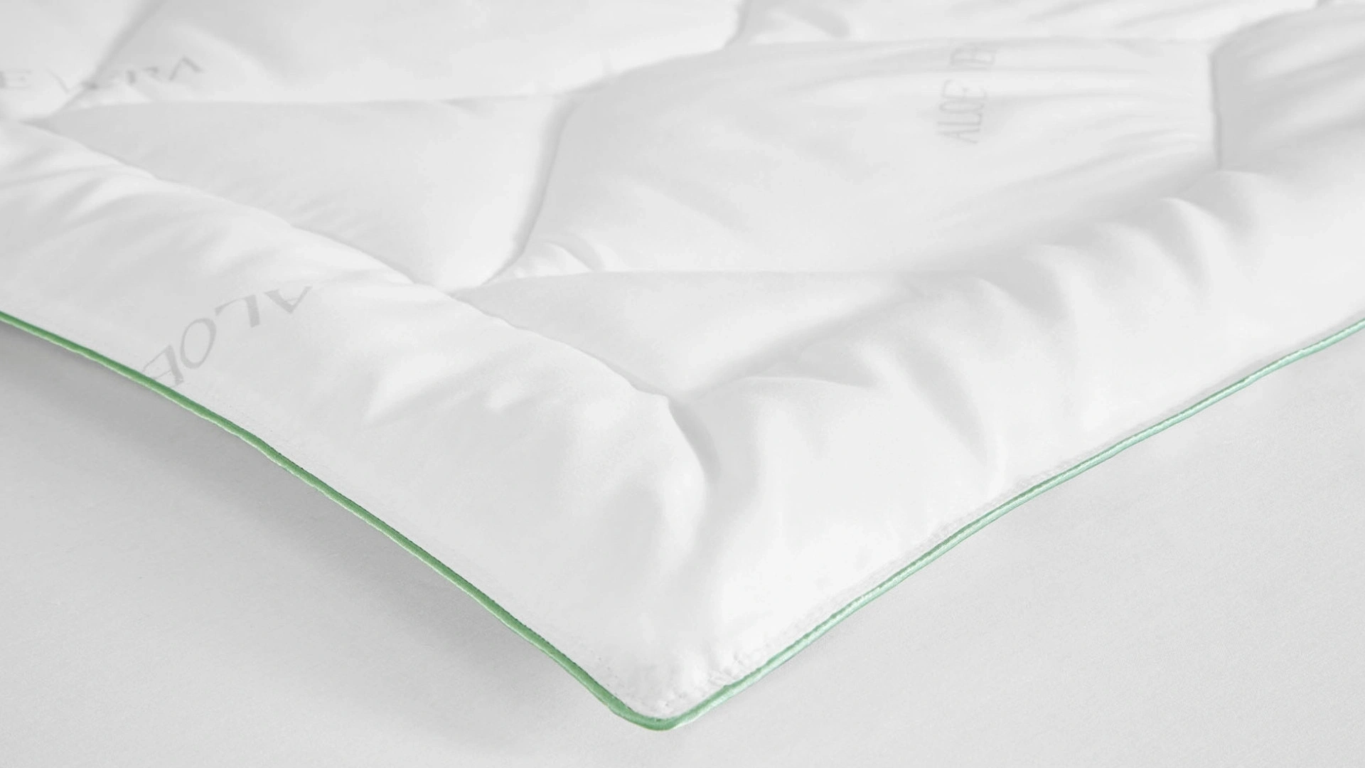 Mucize bitki Aloe Vera’nın özleriyle bütünleşen kumaş, cildin nem oranını dengeler, uyku boyunca rahatlık ve serinlik verir. Nano elyaf dolgu malzemesi, hafif ve hijyeniktir. Terletmez.