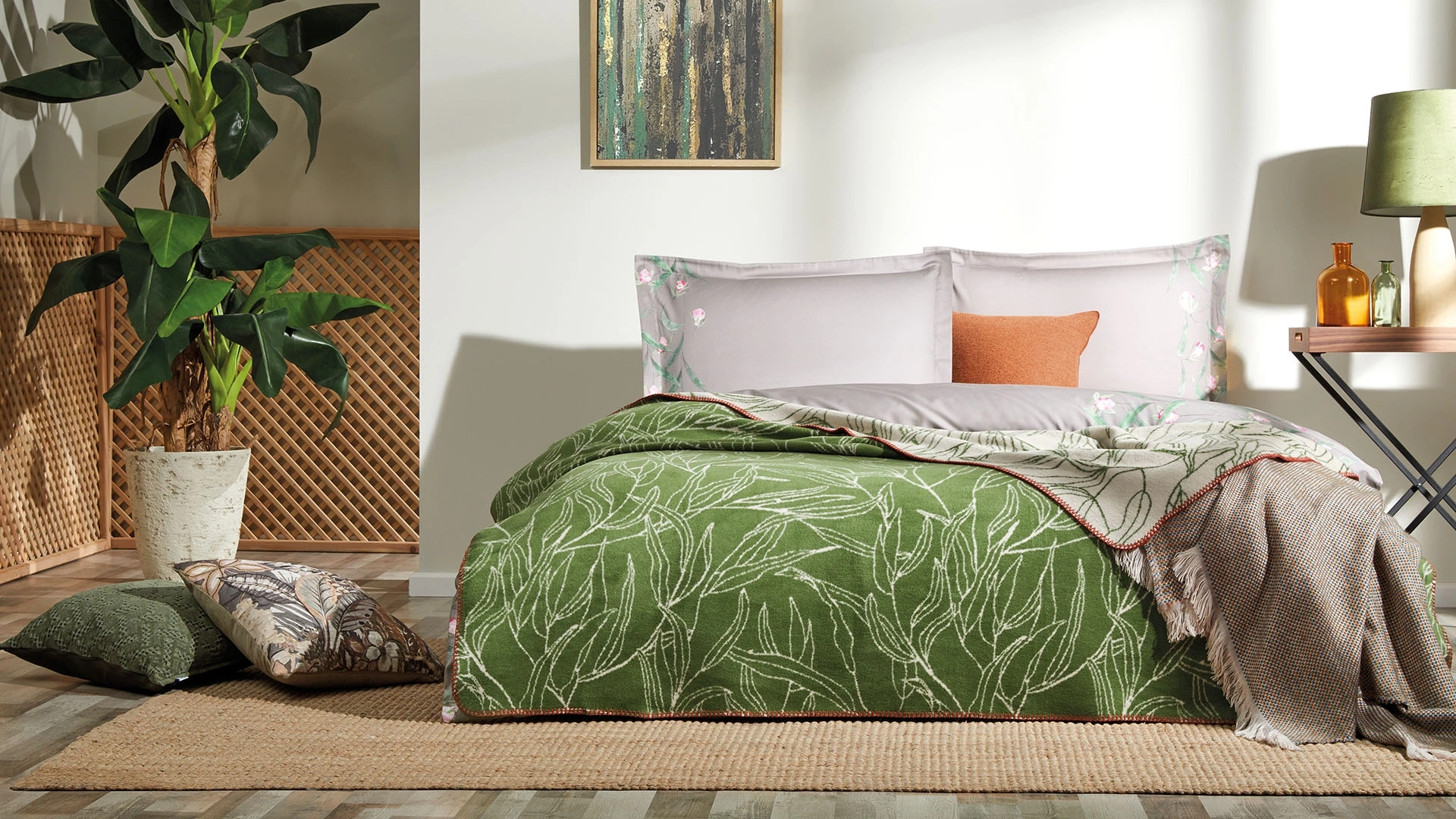 Audrey battaniyeler, doğadan ilham alarak evinize taze bir atmosfer katıyor. Yumuşak dokuları ve zarif yaprak desenleri, sıcaklığı ve estetiği mükemmel bir dengeyle birleştiriyor. Bu battaniyeler, oturma odası veya yatak odasındaki dekorunuza doğal bir şıklık eklemek isteyenler için mükemmel bir tercih olabilir.
