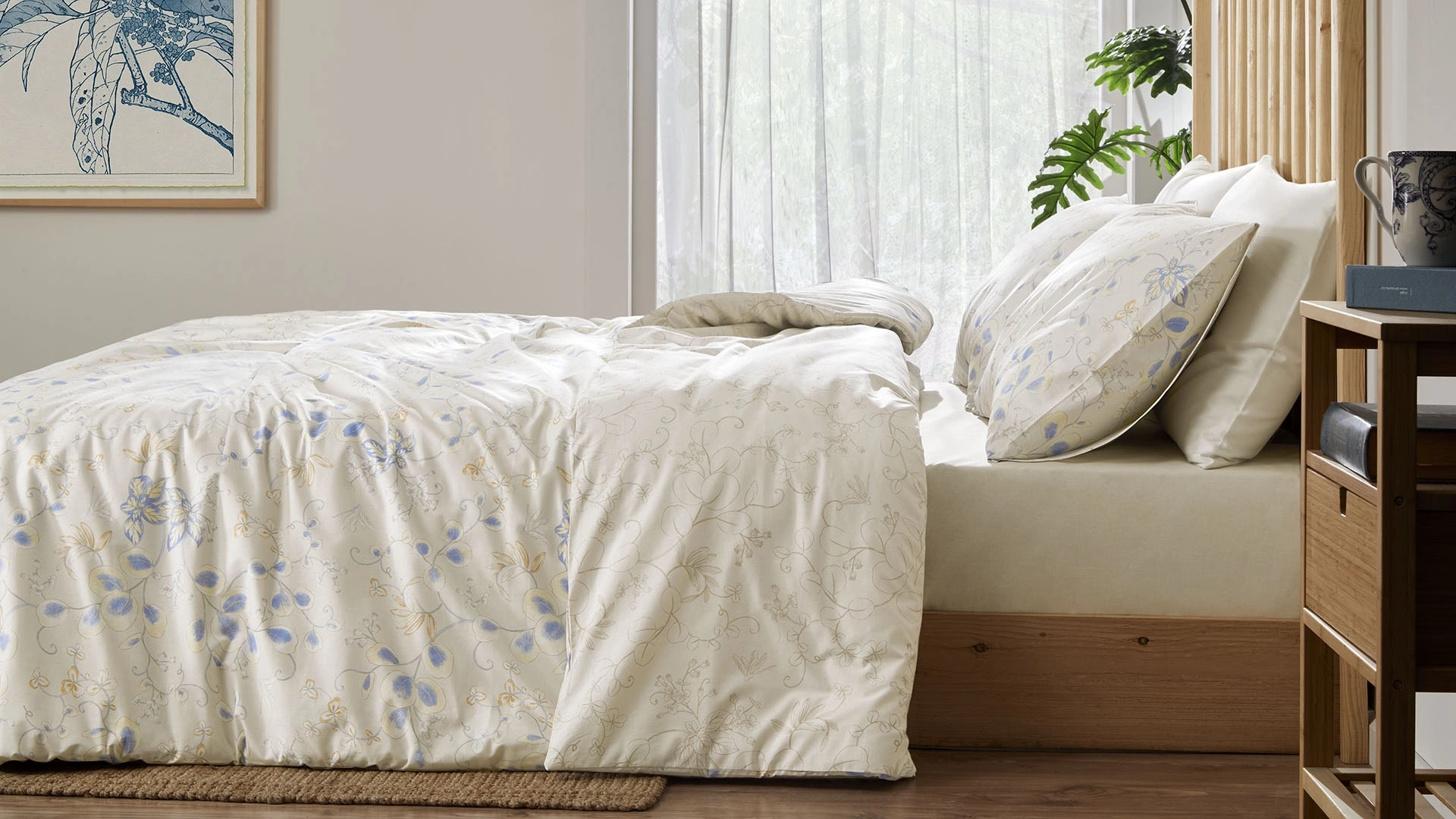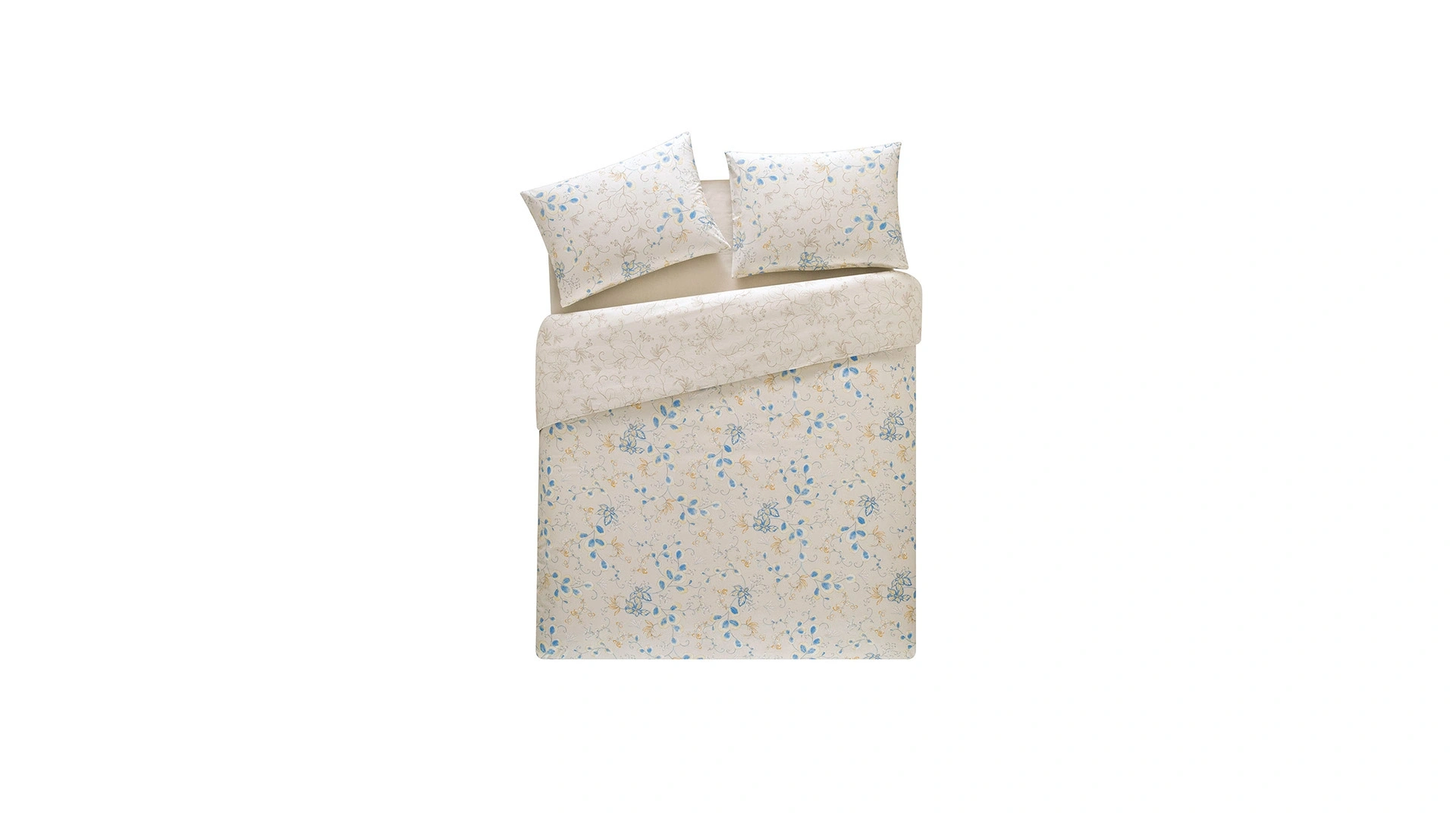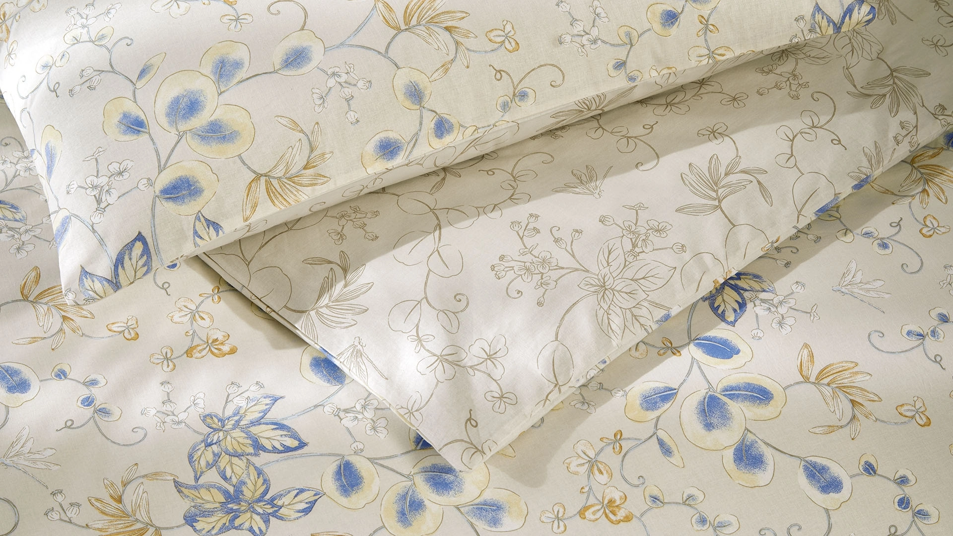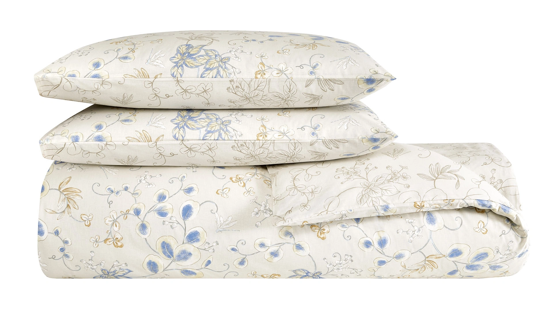 Carla nevresim takımı, zarif desenleri ve yumuşak renk tonlarıyla yatak odanıza huzur ve ferahlık katıyor. Açık gri zemin üzerine serpiştirilmiş zarif yaprak ve çiçek desenleri, doğal bir atmosfer yaratırken mavi ve bej tonlarıyla göz yormayan, şık bir görünüm sunar.