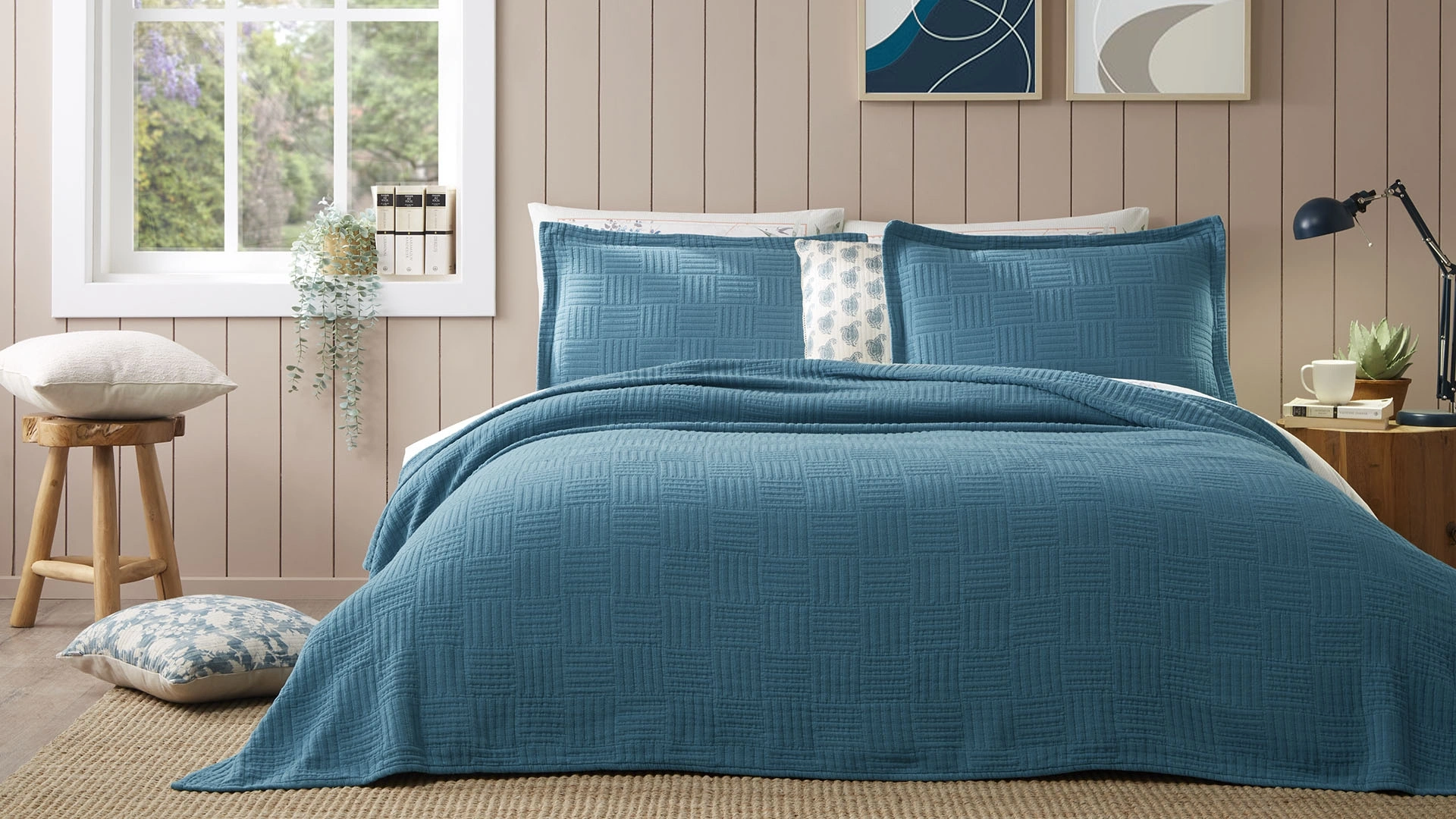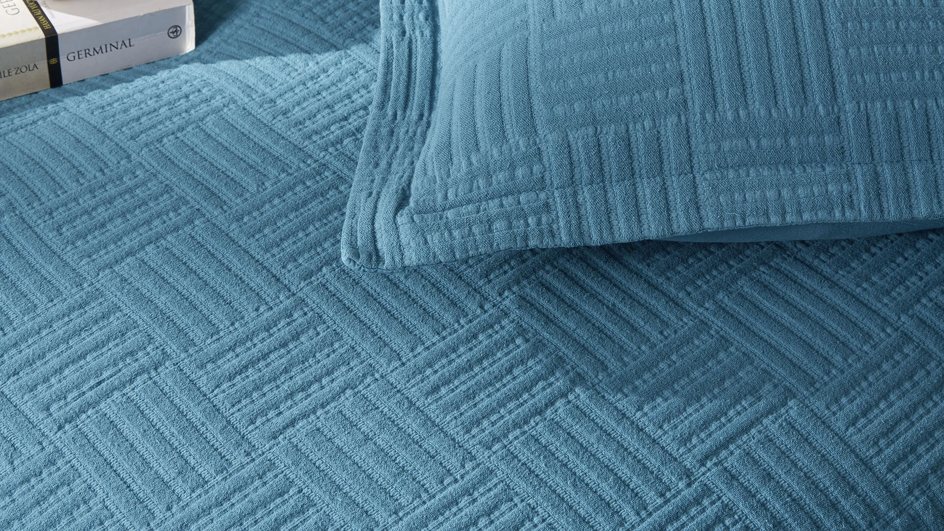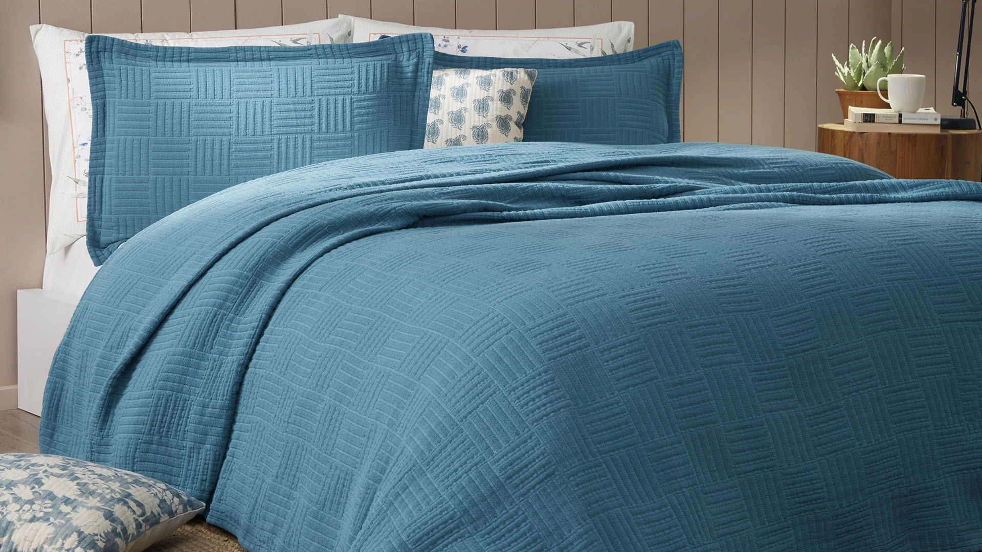 Carley yatak örtüsü, pamuk kumaşıyla yumuşak ve konforlu bir his sunarken, petrol mavisi rengiyle odanıza modern ve ferah bir atmosfer katıyor.