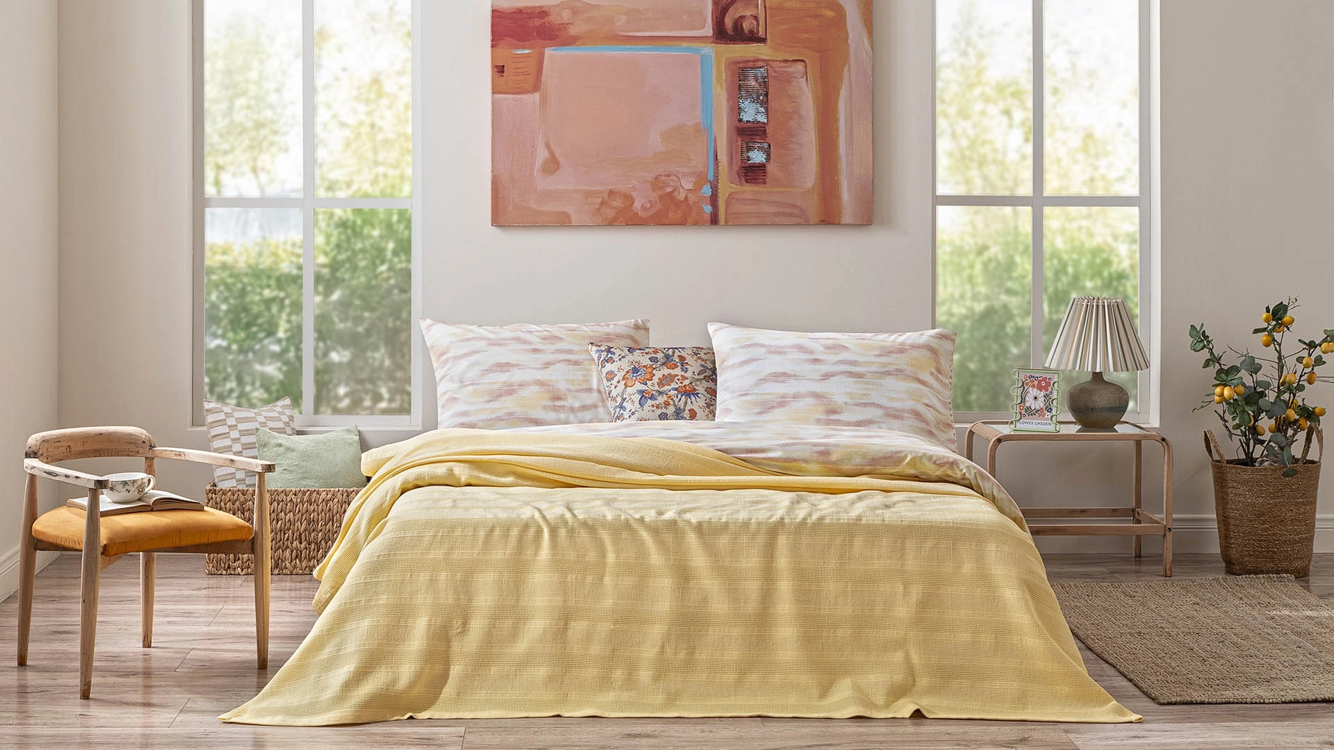 Esten Pike, yüzeyindeki dokulu çizgi desenleriyle dikkat çekerken, farklı renk seçenekleriyle de zevklere hitap ediyor. Yumuşak beyaz tonundan pastel lila ve pudraya, enerjik sarıdan ferah yeşile kadar uzanan renk paleti sayesinde hem klasik hem canlı kombinler oluşturmak mümkün. Her bir renk, Esten’nin sade formunu farklı bir karaktere büründürerek yatak odası stilinize özgünlük katıyor.