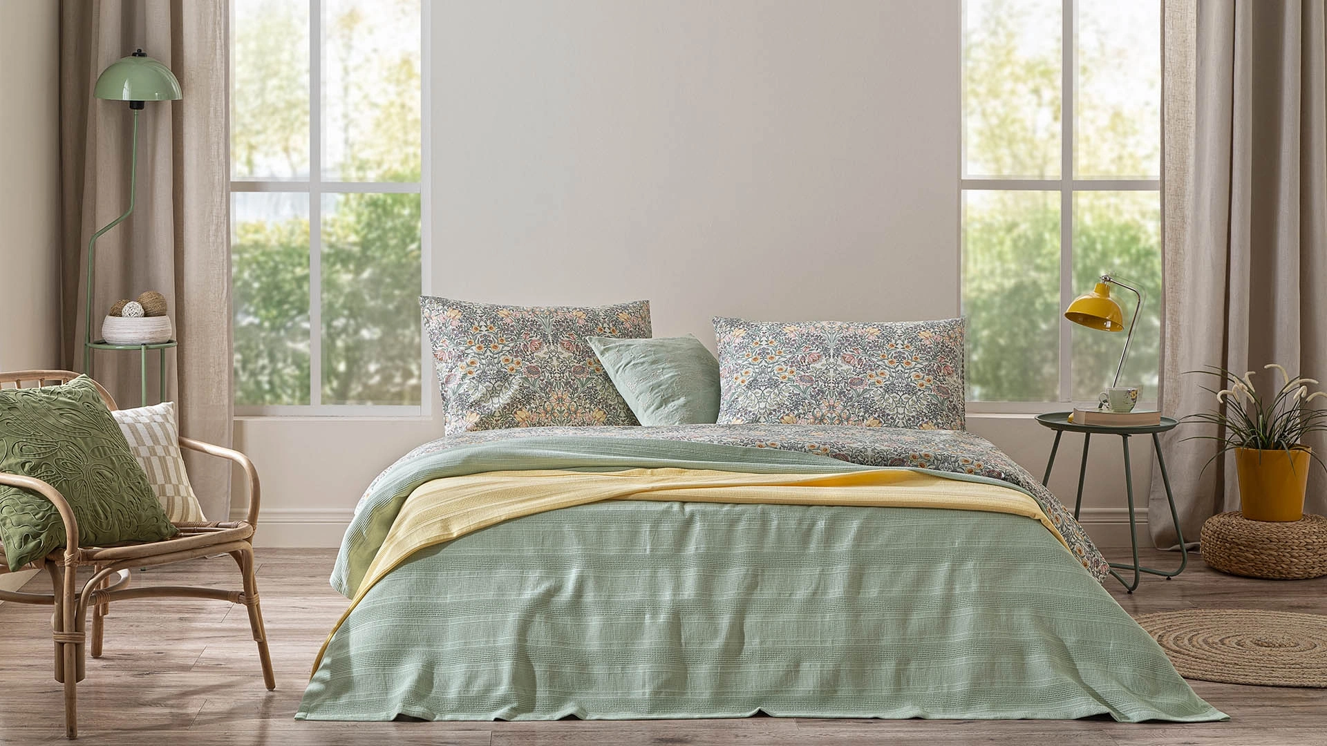 Esten Pike, yüzeyindeki dokulu çizgi desenleriyle dikkat çekerken, farklı renk seçenekleriyle de zevklere hitap ediyor. Yumuşak beyaz tonundan pastel lila ve pudraya, enerjik sarıdan ferah yeşile kadar uzanan renk paleti sayesinde hem klasik hem canlı kombinler oluşturmak mümkün. Her bir renk, Esten’nin sade formunu farklı bir karaktere büründürerek yatak odası stilinize özgünlük katıyor.