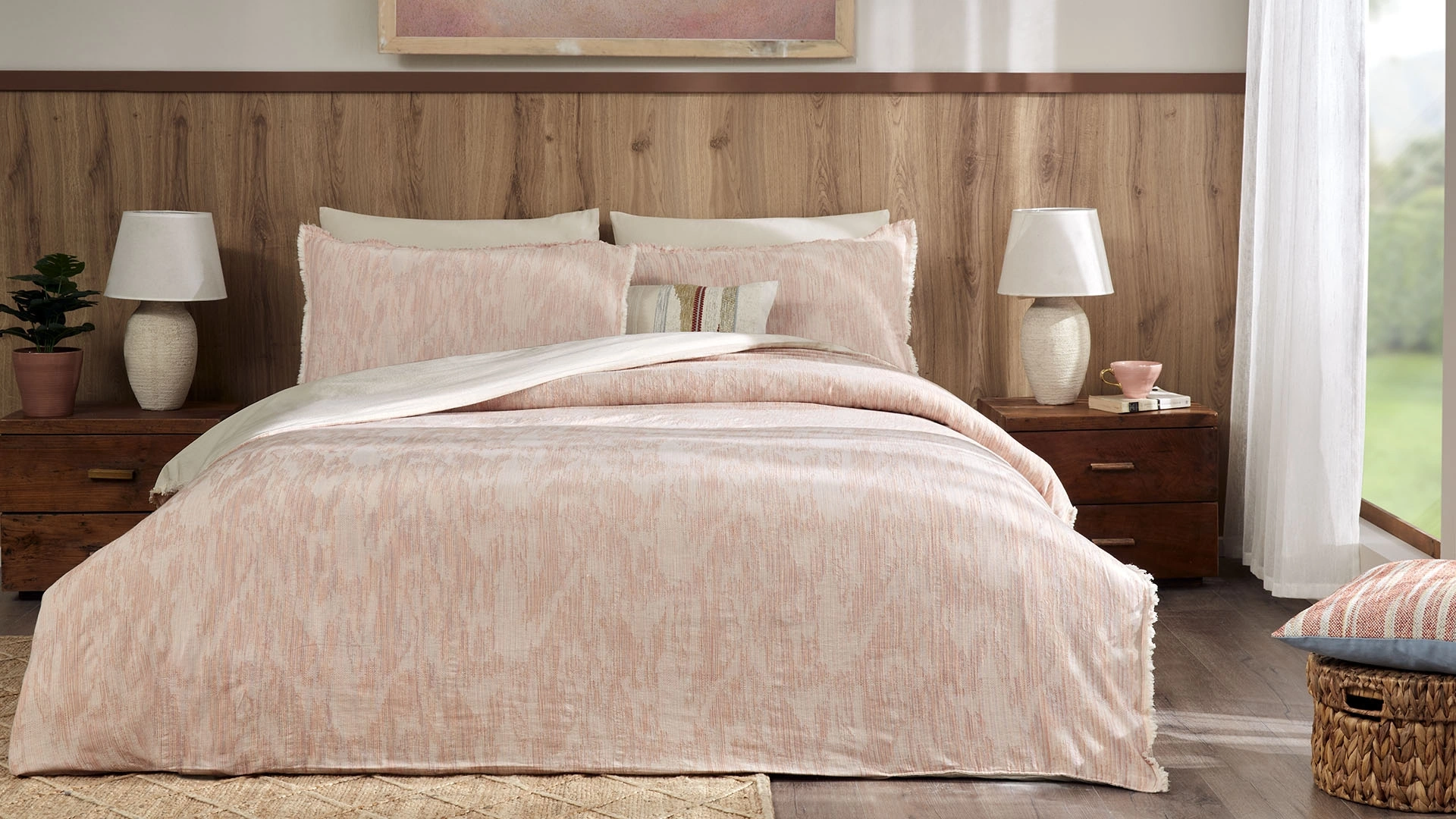 Yatak odanızda doğal ve sade bir atmosfer yaratmak için tasarlanan Ferny nevresim takımı, ipliği boyalı dokusuyla öne çıkıyor. Renk geçişlerinin yumuşak uyumu ve püskül detayları, modern şıklığı zarif bir dokunuşla tamamlıyor. Günlük kullanım için ideal yapısıyla hem konforu hem de estetiği bir araya getirerek yatak odanıza sıcak bir hava katıyor.