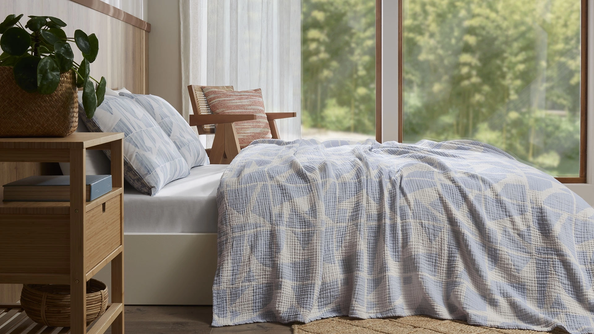 Groove Yatak Örtüsü, mavi ve beyaz tonlarıyla yatak odanızda modern ve samimi bir tarz yaratıyor. Minimalist desenleri, huzurlu bir atmosfer sunarak odanıza ferahlık katıyor. Müslinin yumuşak dokusu, uyku deneyiminizi desteklerken, yatağın üzerine serildiğinde odanın tarzını tamamlayarak estetik bir görünüm elde etmenizi sağlıyor. Bu örtü, hem sade hem de şık bir dokunuş arayanlar için ideal bir seçimdir.