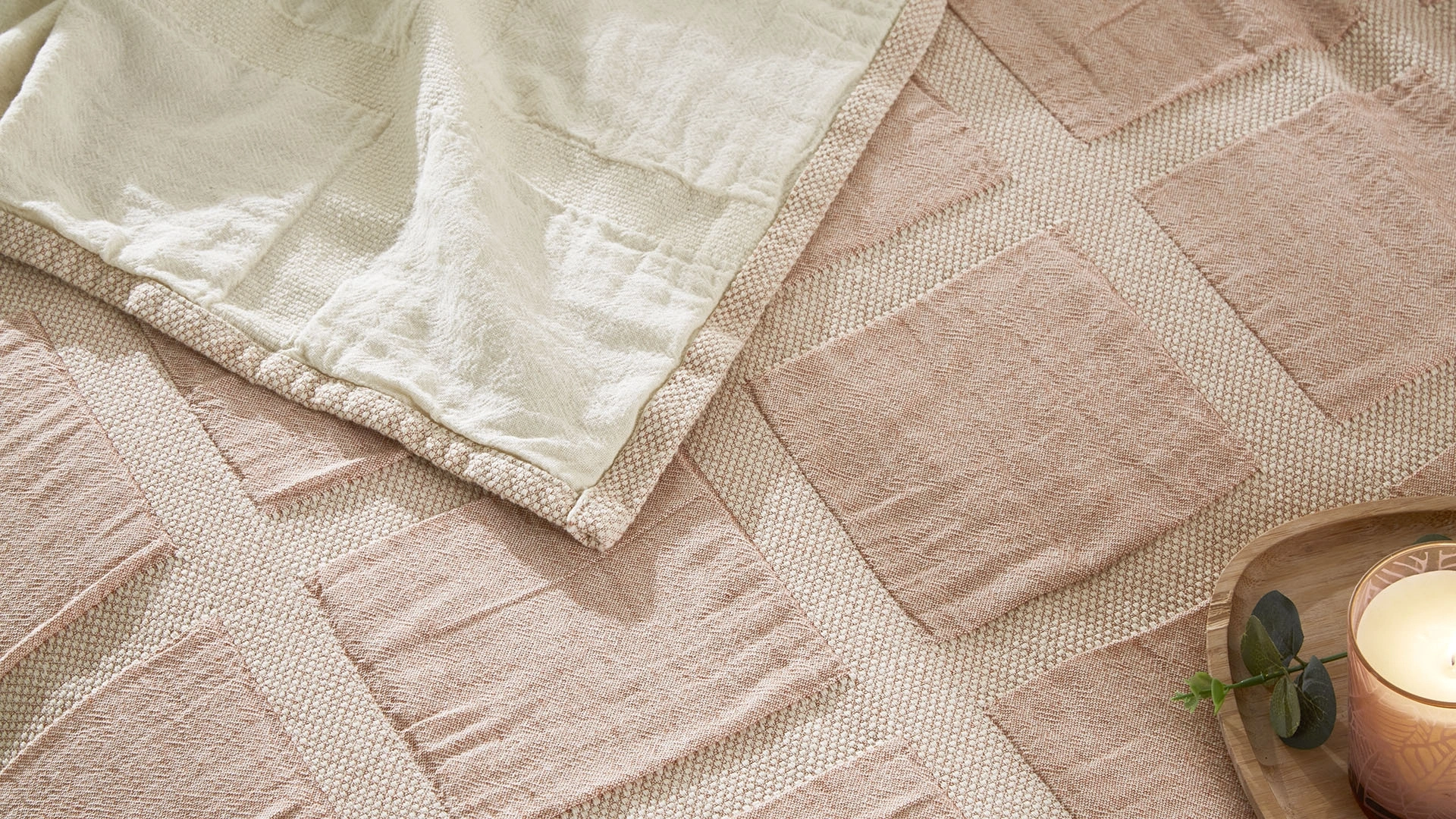 Hope yatak örtüsü, pamuk kumaşıyla yumuşak ve rahat bir his sunarken, geometrik deseniyle odanıza estetik bir görünüm kazandırıyor.