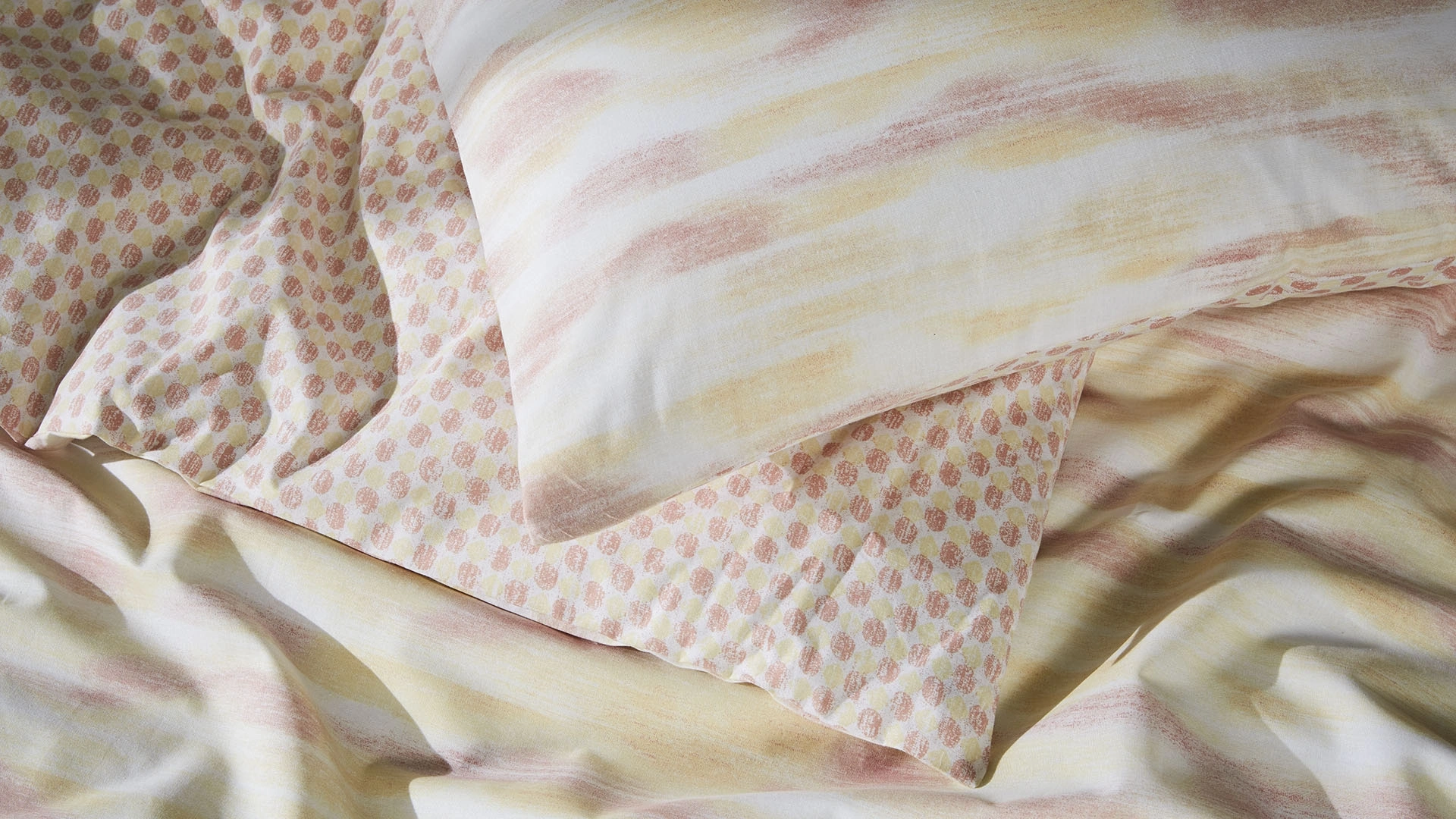 Leda nevresim takımı, pastel geçişleriyle yatak odanıza huzurlu ve aydınlık bir hava katıyor. Bej, sarı ve pudra tonlarının bulut gibi yumuşak geçişlerle buluştuğu bu tasarım, güne neşeyle başlamak isteyenler için ideal. Çift taraflı kullanıma uygun tasarımı ile dekorasyonunuzu dilediğiniz gibi şekillendirebilir, mevsime ve ruh halinize göre yatağınızı yenileyebilirsiniz.