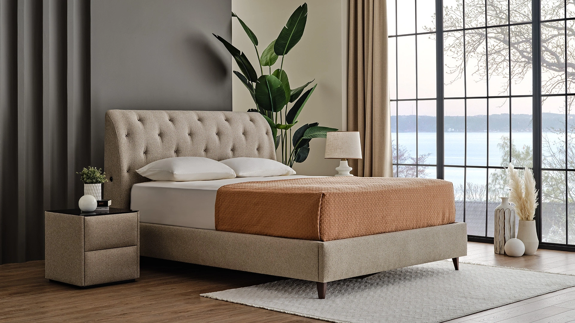 Başlık ve komodini ile bütüncül tasarım yakalayan Maestro baza klasik tarzda yüksek ayaklı yapısı ve etkin depolama alanı ile rahatlık, şıklıkve kullanım kolaylığı sunuyor.