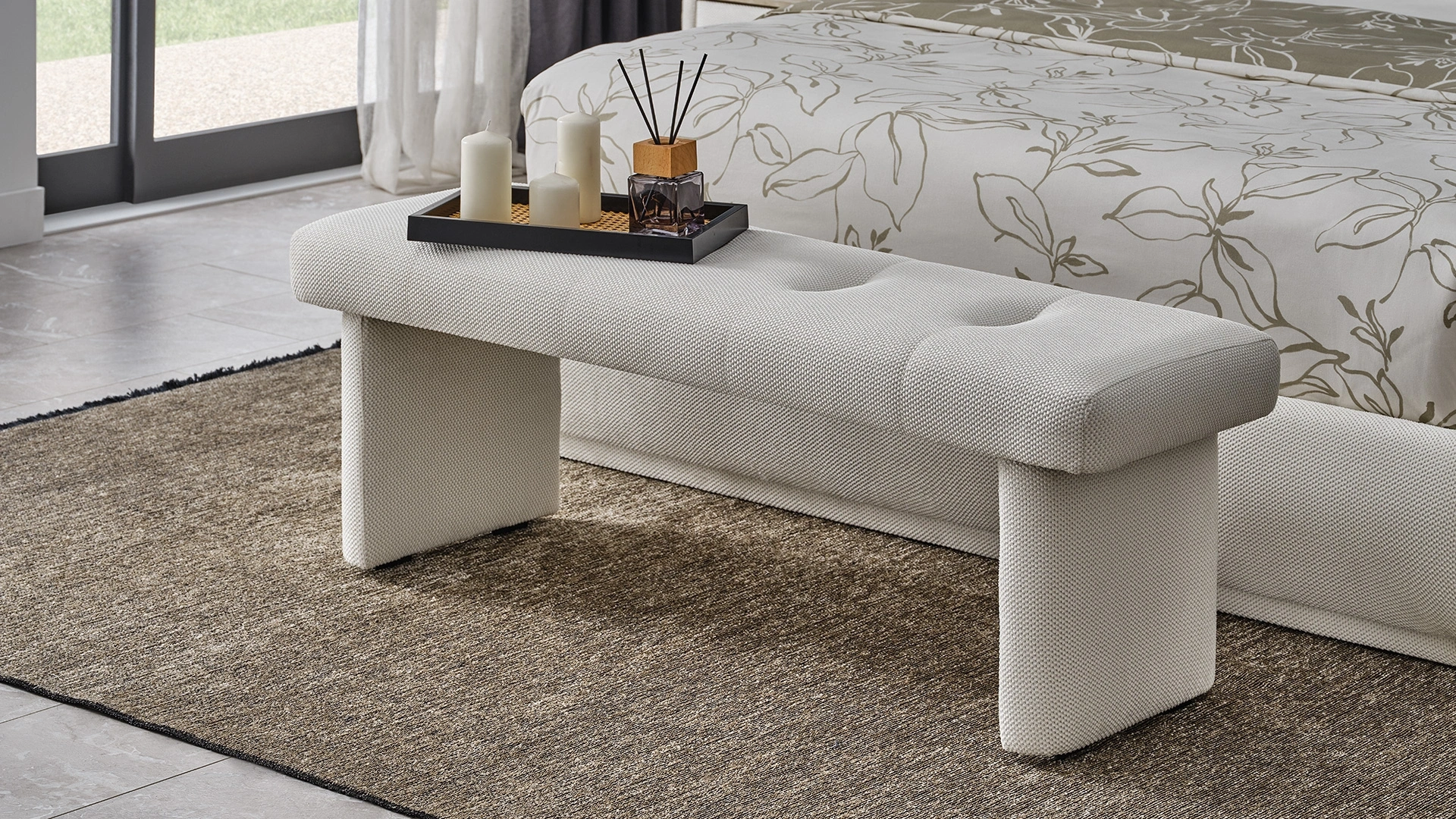 Modern çizgilerle yorumlanan bohem zarafeti, yatak odasında sofistike bir atmosferle buluşturur.Yumuşak formları ve kavisli yüksek başlığıyla güçlü ama sade bir duruş sunan bu set, estetik ve konforu doğal bir dengede bir araya getirir.