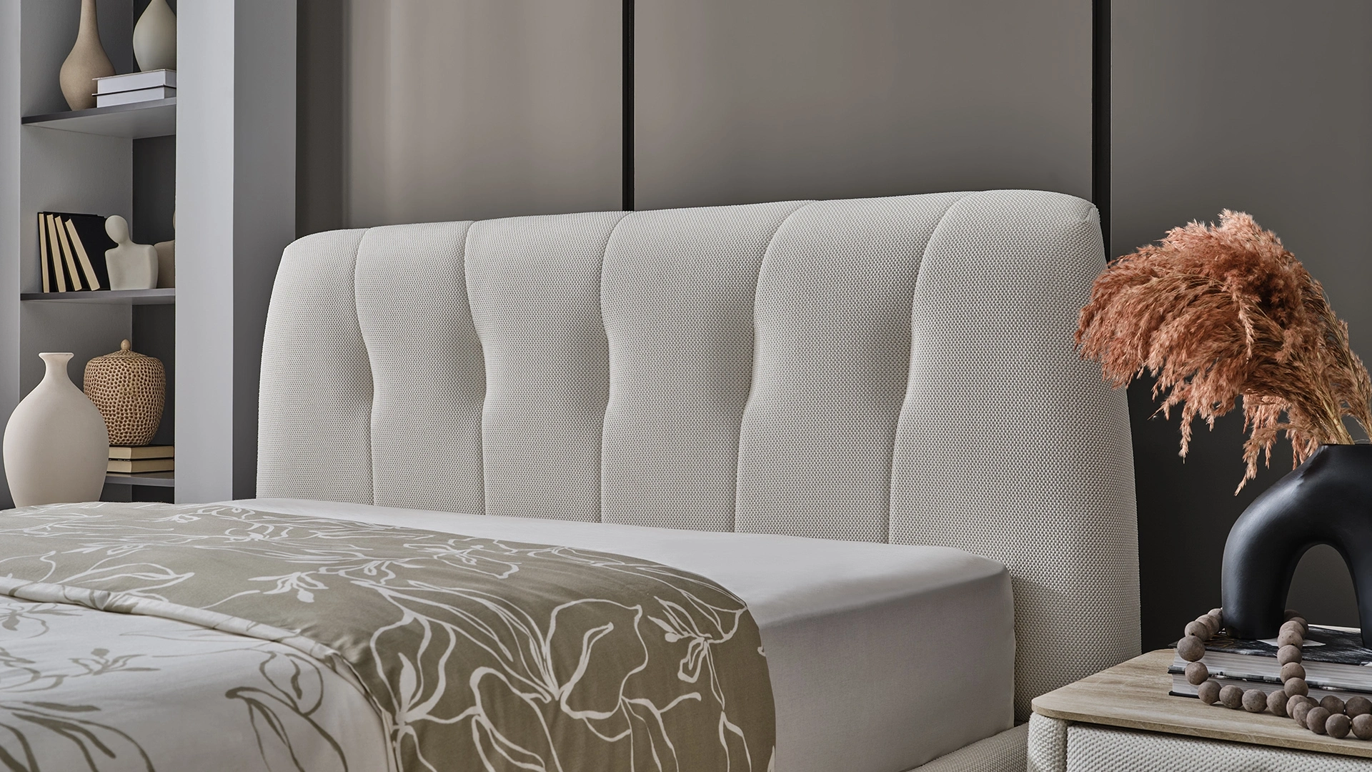 Modern çizgilerle yorumlanan bohem zarafeti, yatak odasında sofistike bir atmosferle buluşturur.Yumuşak formları ve kavisli yüksek başlığıyla güçlü ama sade bir duruş sunan bu set, estetik ve konforu doğal bir dengede bir araya getirir.