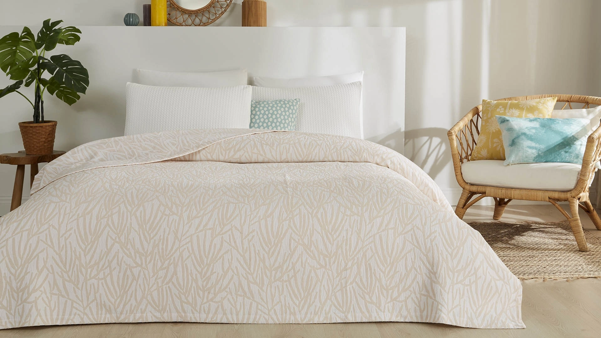 Narni yatak örtüsü, yatak odanıza sıcak ve huzurlu bir hava katıyor. Yumuşak renk tonları ve zarif desenleriyle dikkat çeken bu örtü, odanızı daha ferah ve aydınlık hissettirecek şekilde tasarlandı. Klasik ve modern çizgileri bir araya getiren tasarımıyla her türlü dekorasyona uyum sağlar. Konfor ve zarafeti buluşturan bu örtü, yatak odanızda zamansız bir şıklık sunuyor.
