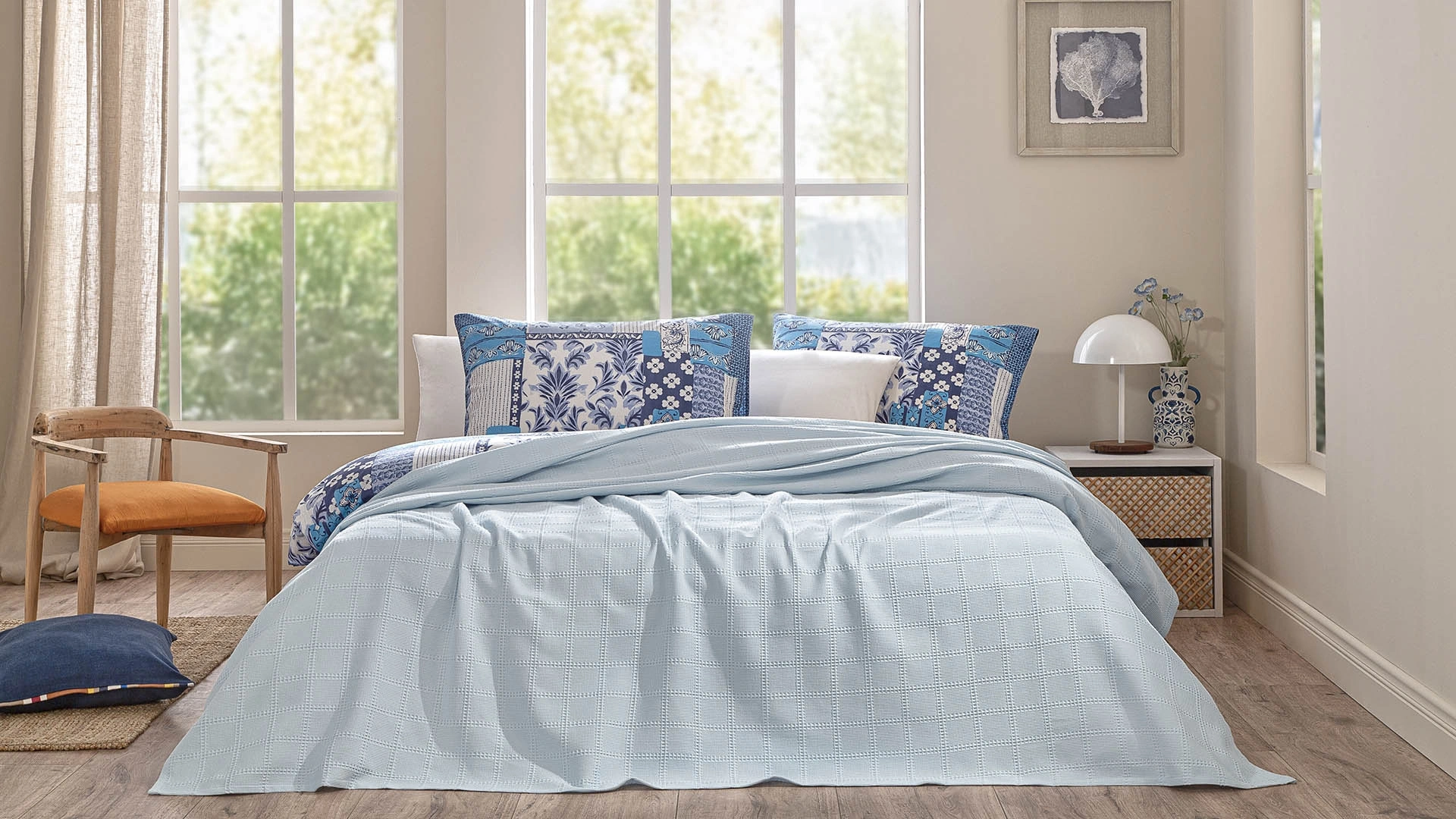Zarif dokusu ve yumuşak yapısıyla öne çıkan Ruche pike, sıcak havalarda hafifliğiyle ferah bir kullanım sunarken, yatak odanıza da sade bir şıklık katıyor. Geometrik kabartmaları sayesinde klasik pike anlayışına modern bir yorum getiren bu tasarım, hem konfor hem de görünüm açısından dengeli bir seçenek arayanlar için ideal. Mavi ve pembe olmak üzere iki renk alternatifi sunan Ruche, farklı tarzlara kolayca uyum sağlar.