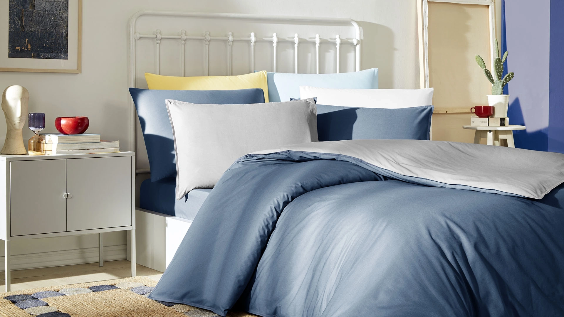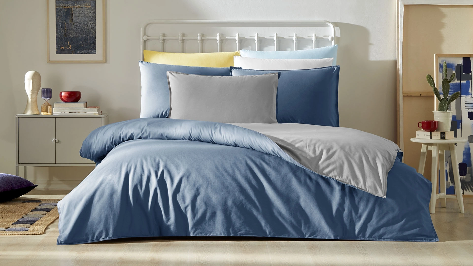 Stark Nevresim Takımı, %100 pamuk malzemeden yapılmış, düz ve çift taraflı kullanıma uygun bir nevresim takımıdır. Bu özelliği, takımın daha esnek ve kullanışlı olmasını sağlar. Özellikle dekorasyon amacıyla veya mevsim değişikliklerinde kullanıcıların tercihine göre değişebilir.
