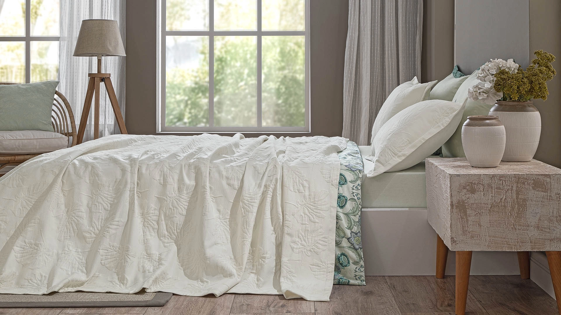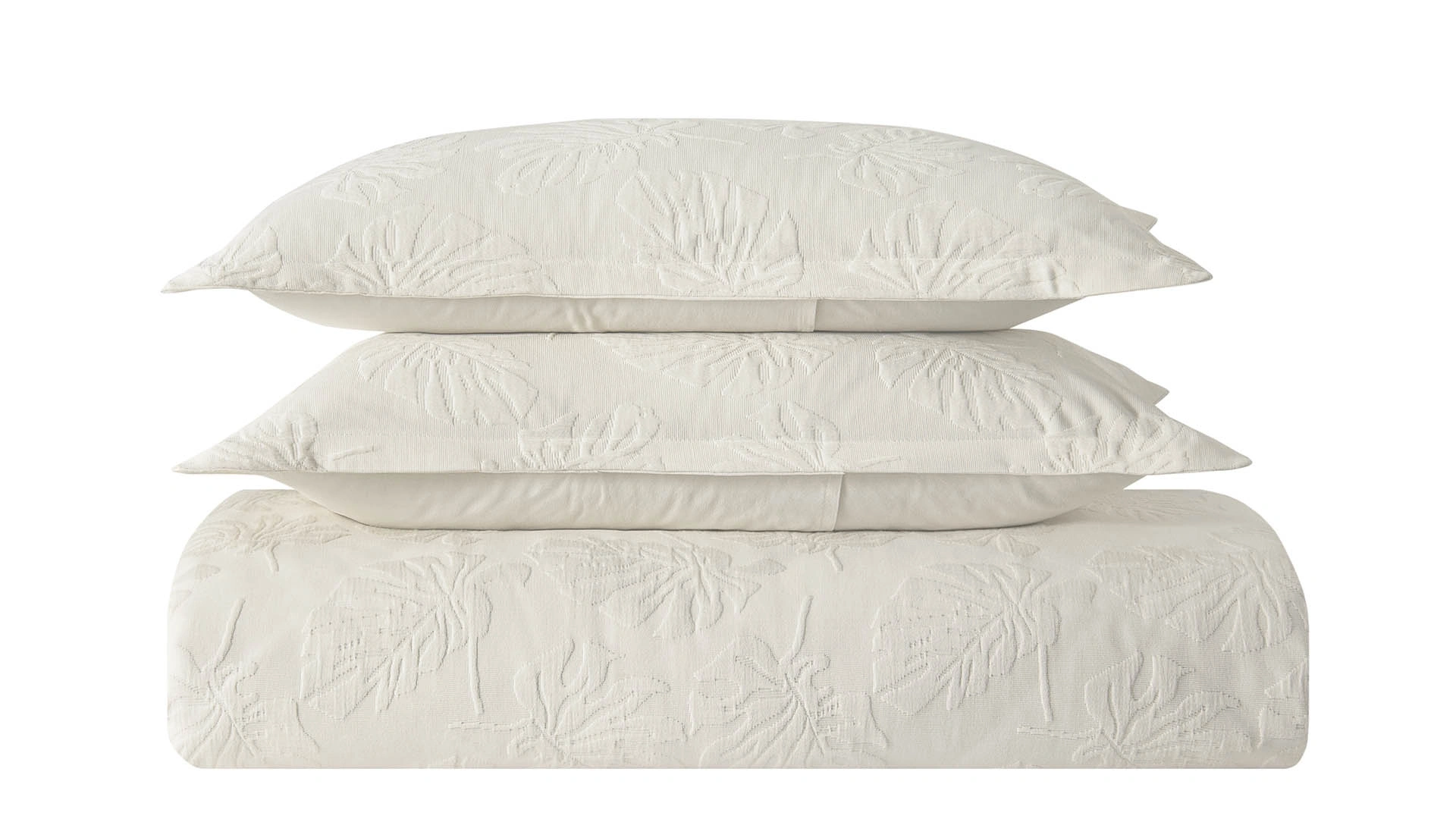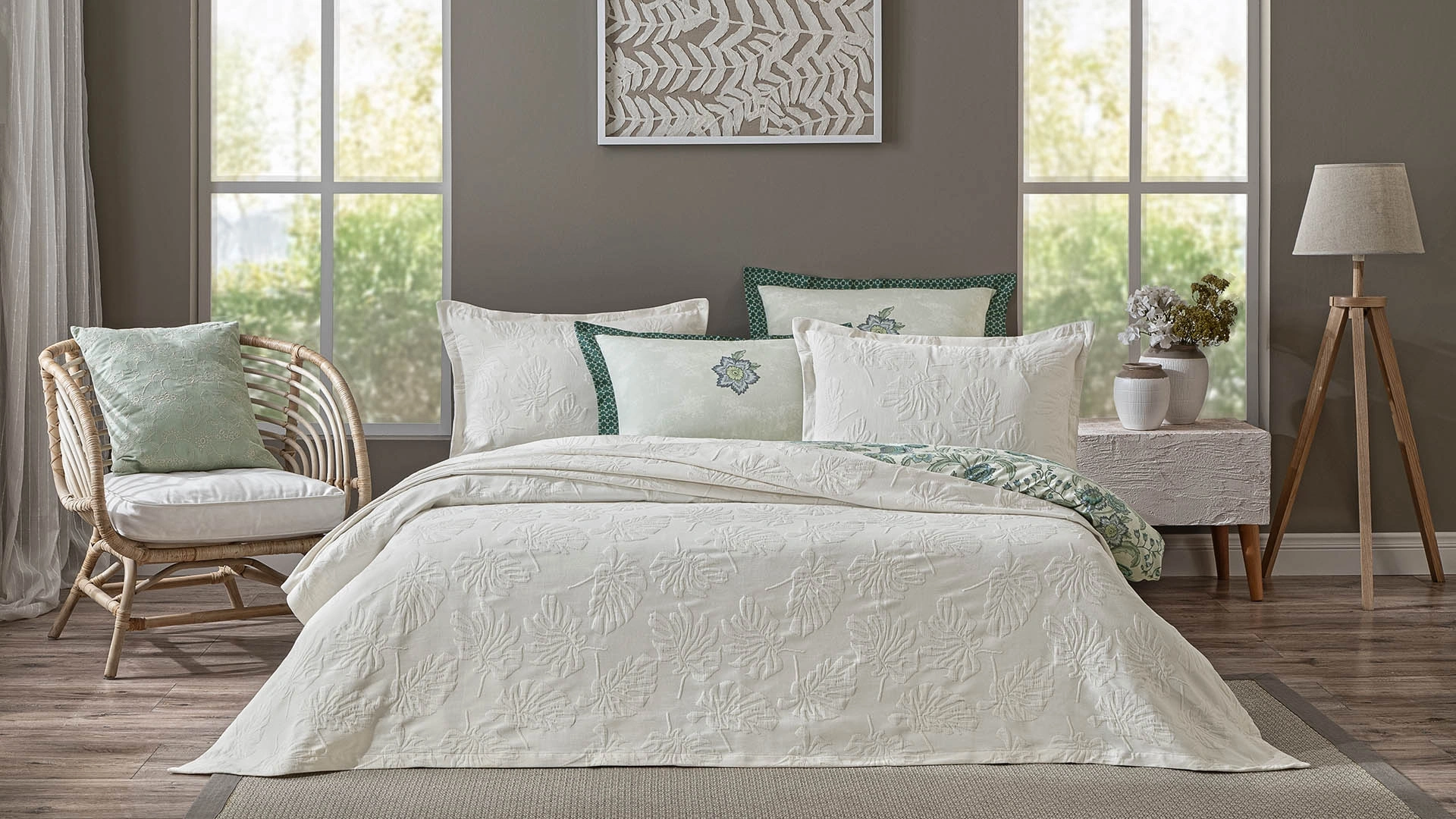 Doğadan ilham alan yaprak desenleriyle işlenmiş Verbena Yatak Örtüsü Takımı, yatak odanıza ferah ve huzurlu bir atmosfer katıyor. Narin dokusu ve krem tonlarındaki zarif görünümüyle her mevsim kullanıma uygun bu takım, sadeliği şıklıkla buluşturuyor. %100 pamuklu dokusu sayesinde yumuşak bir temas sunarken, jakarlı yüzeyiyle derinlikli bir doku oluşturur. Modern, bohem ya da rustik… Hangi tarzı benimsemiş olursanız olun, Verbena her yatak odasında kendine yer bulur.